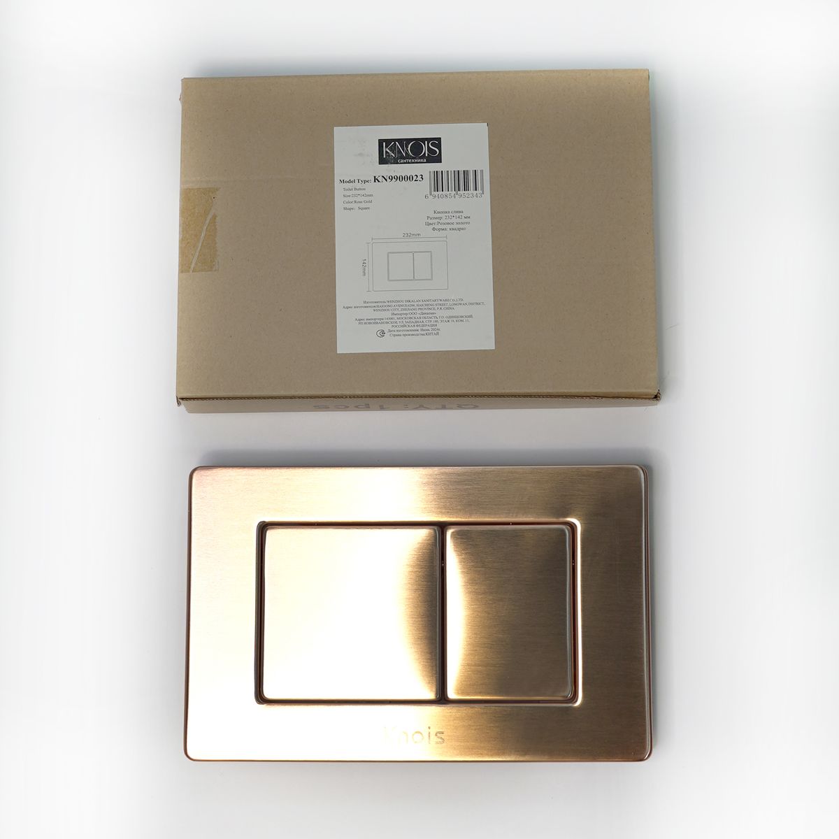 Статус: Складская программа; Страна производства: Китай; Бренд: KNOIS; Бренд: KNOIS; Артикул: KN9900023; Код: УТ000038904; Назначение: Для инсталляций; Стиль дизайна: Классический; Цвет кнопки: Розовое золото; Материал кнопки: Нержавеющая сталь; Эффект покрытия кнопки: Глянцевый; Режим слива воды: Две кнопки ( режим эконом); Управление: Механическое; Ширина, мм: 237; Высота, мм: 152; Гарантия на товар: 1 год; Страна бренда: Китай; Срок поставки: 1-3 дня