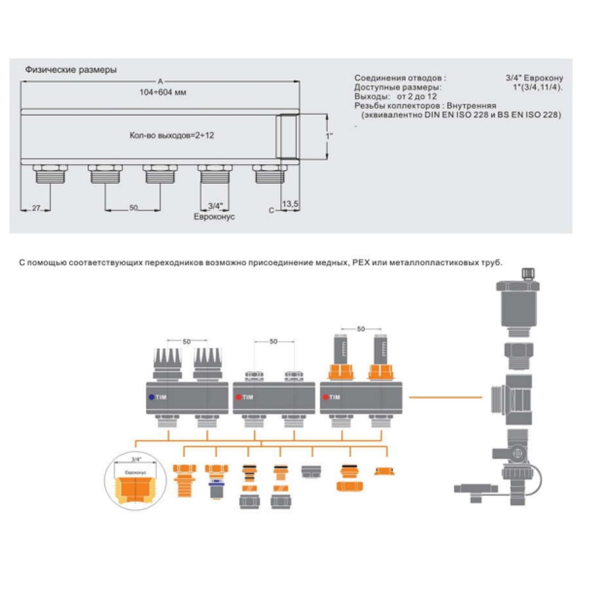 Присоединительный размер коллектора (отвода)