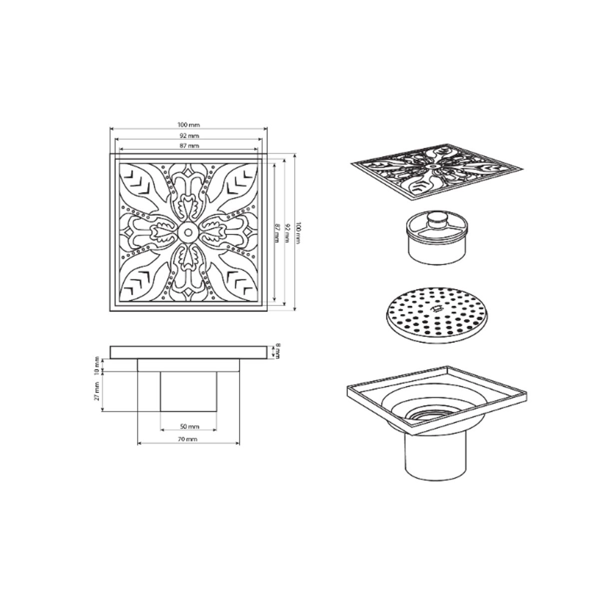 Статус: Складская программа; Страна производства: Китай; Бренд: САНАКС; Коллекции: Трапы Санакс; Артикул: 00031-2; Код: УТ000037610; Направление выпуска: Вертикальное; Вид решетки: Перфорированная; Материал корпуса: Пластик; Материал решетки: ЦАМ; Цвет покрытия: Бронза; Эффект покрытия: Матовый; Ширина, мм: 100; Глубина, мм: 100; Высота, мм: 45; Регулировка по высоте: Нет; Сухой затвор: Да; Гидрозатвор: Нет; Диаметр слива: 50; Мин пропускная способность, л/мин: 30; Гарантия на товар: 1 год; Страна бренда: Россия; Срок поставки: 1-3 дня