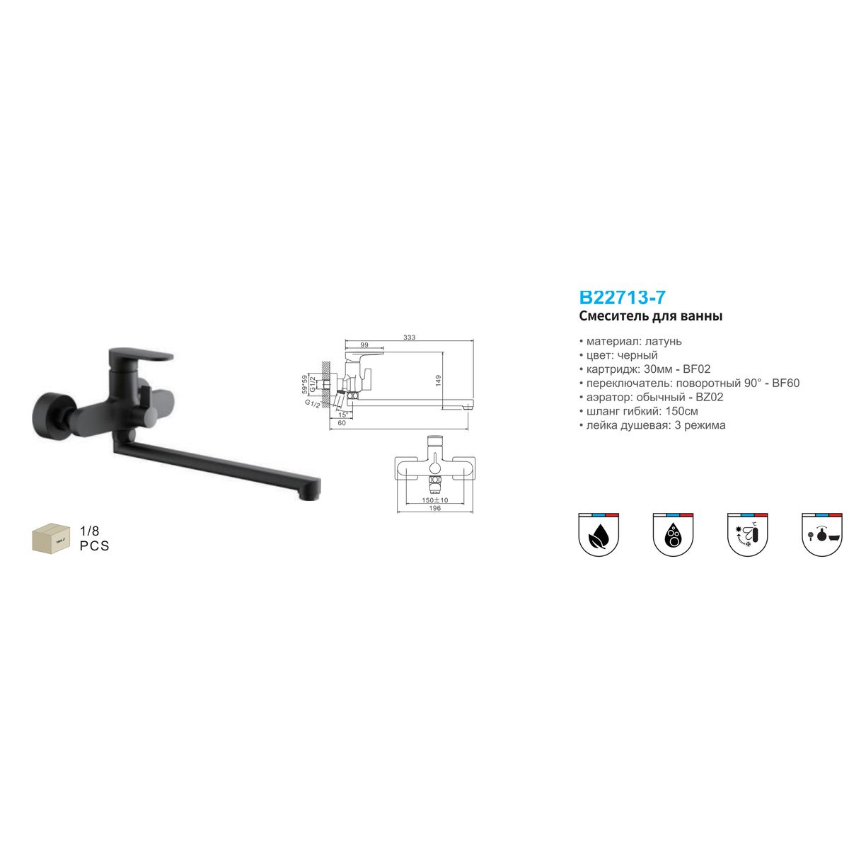 Статус: Акция; Страна бренда: Китай; Страна производства: Китай; Бренд: BELZ; Бренд: BELZ; Коллекции: B713; Назначение: Для ванны; Артикул: B22713-7; Код: УТ000036616; Тип управления: Рычажный; Материал корпуса: Латунь; Стиль дизайна: Современный; Линии форм: Округлые; Цвет покрытия: Черный; Эффект покрытия: Матовый; Длина излива, мм: 320; Поворотный излив: Да; Гарантия на товар: 5 лет; Срок поставки: 1-3 дня