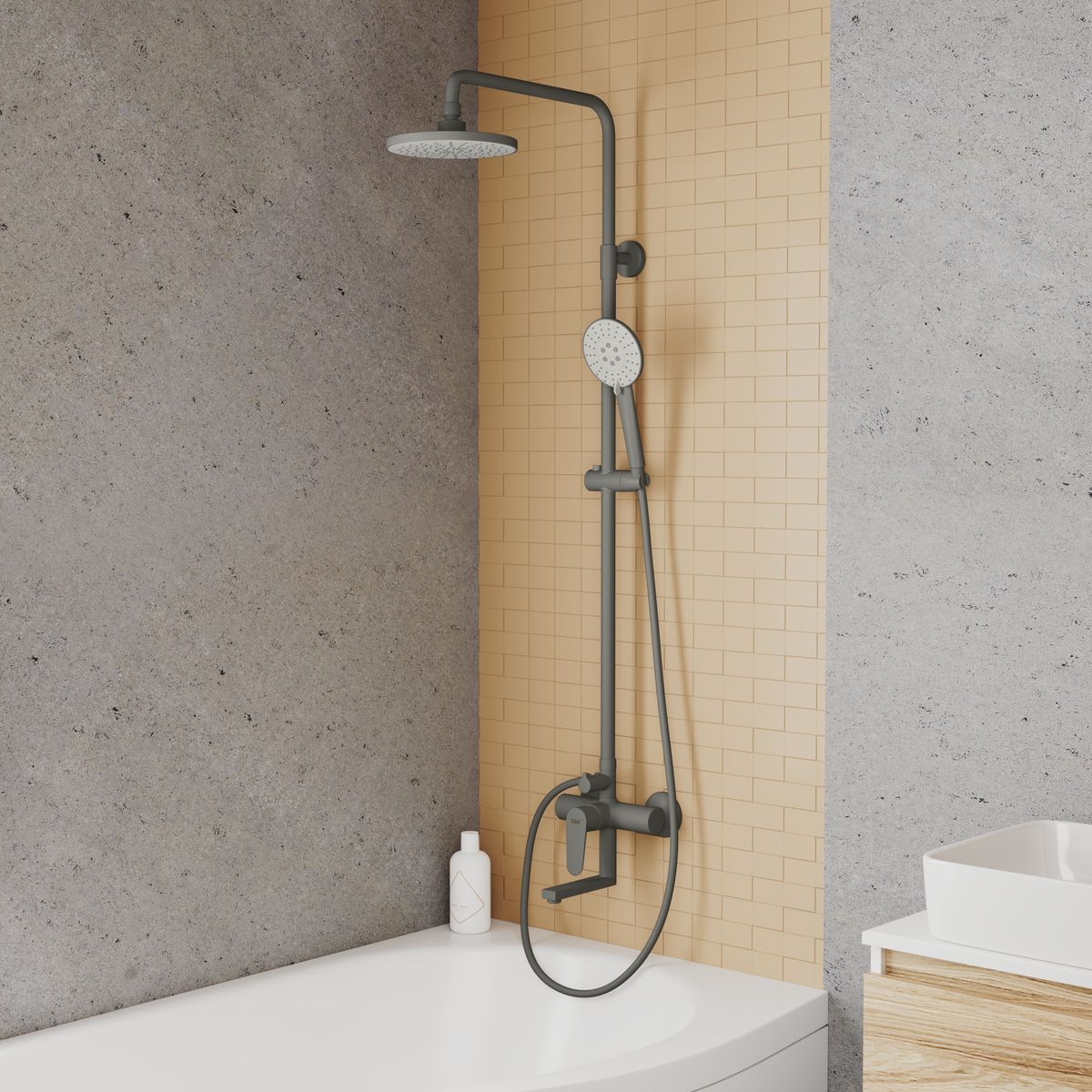 Статус: Складская программа; Страна бренда: Германия; Страна производства: Германия; Бренд: D&K; Бренд: D&K; Коллекции: Bayern.Munchen; Назначение: Душевые системы; Артикул: DA1563706B18; Код: УТ000036383; Тип управления: Рычажный; Материал корпуса: Латунь; Стиль дизайна: Классический; Линии форм: Округлые; Цвет покрытия: Графит; Эффект покрытия: Матовый; Длина излива, мм: 120; Поворотный излив: Да; Тропические душевые стойки со смесителем: Да; Гарантия на товар: 5 лет; Срок поставки: 1-3 дня