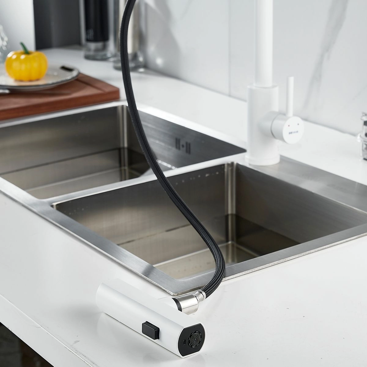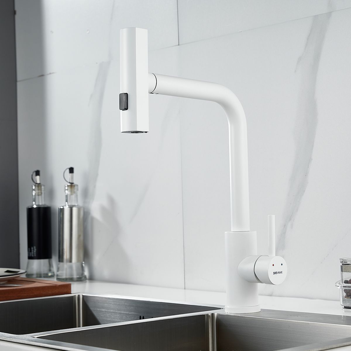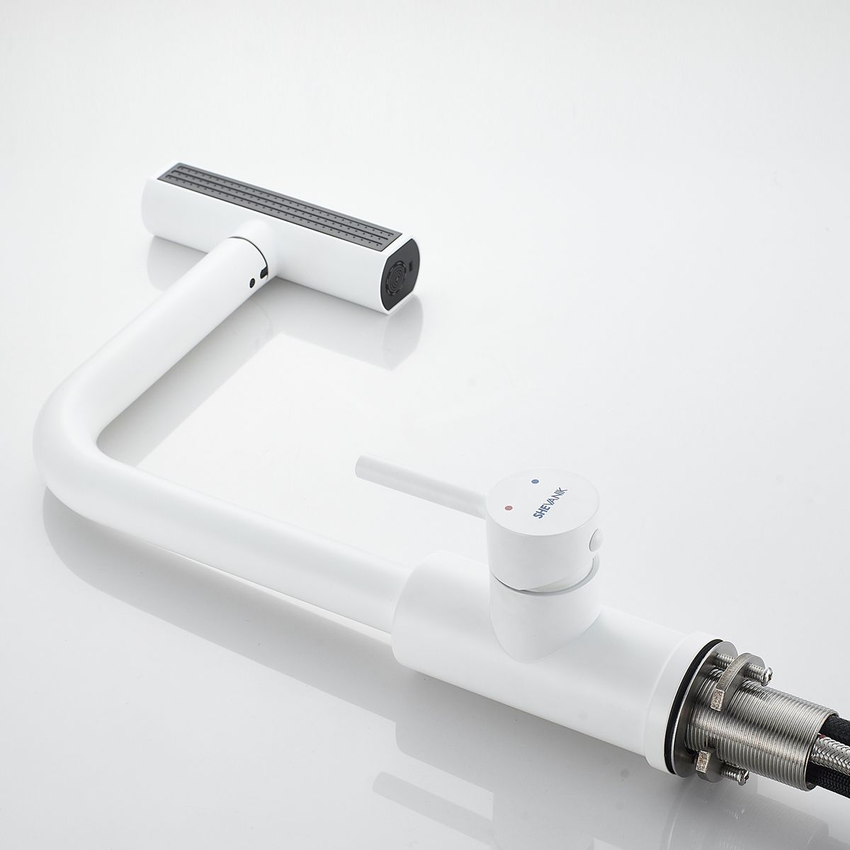 Страна бренда: Китай; Страна производства: Китай; Бренд: SHEVANIK; Бренд: SHEVANIK; Коллекции: S26C; Назначение: Для кухни; Артикул: S263C; Код: УТ000034523; Тип управления: Рычажный; Материал корпуса: Нержавеющая сталь; Стиль дизайна: Современный; Линии форм: Округлые; Цвет покрытия: Белый; Эффект покрытия: Матовый; Длина излива, мм: 200; Поворотный излив: Да; Гибкий излив: Нет; Вытяжной излив: Да; Гарантия на товар: 5 лет; Срок поставки: 1-3 дня