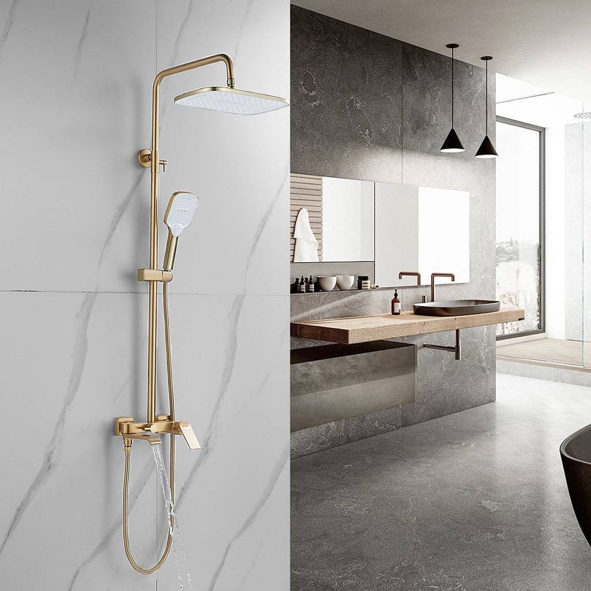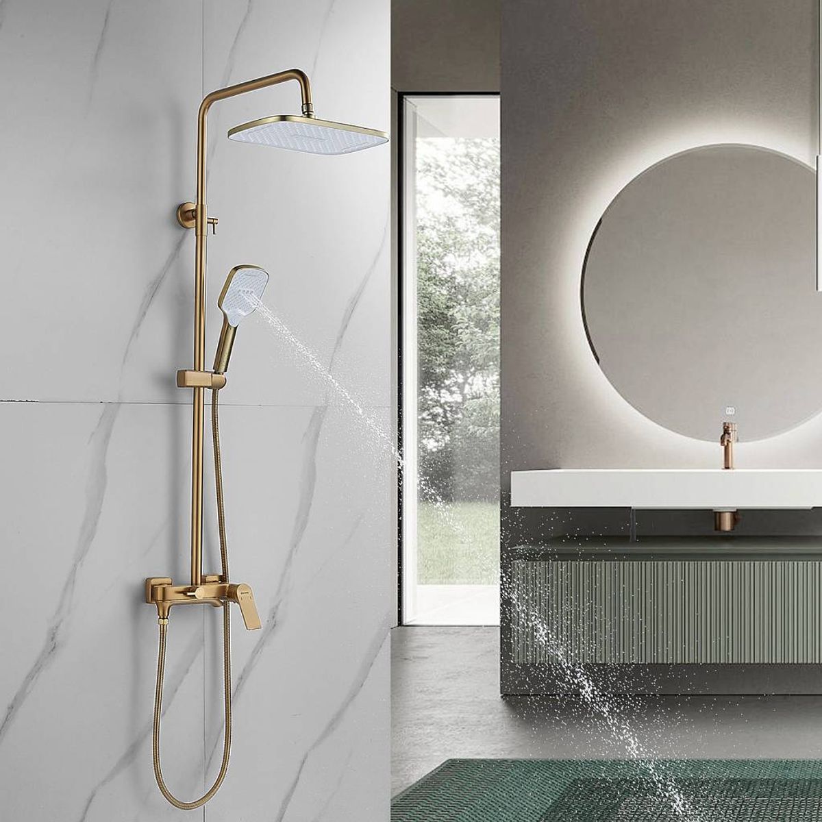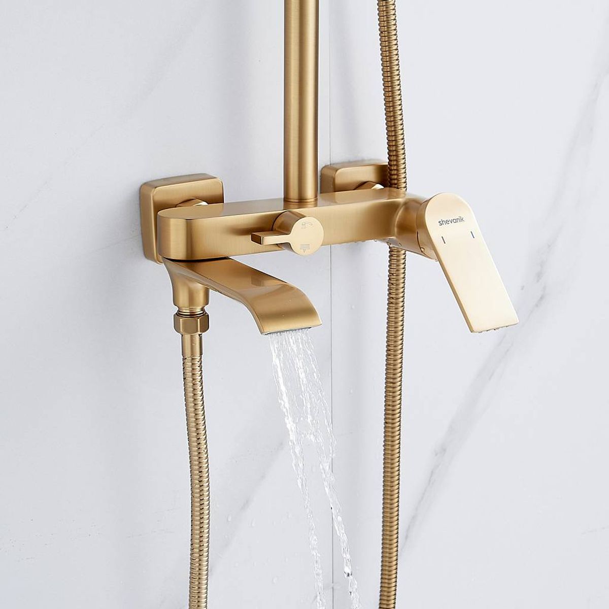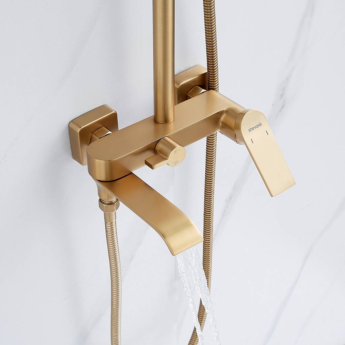 Статус: Акция; Страна бренда: Китай; Страна производства: Китай; Бренд: SHEVANIK; Бренд: SHEVANIK; Назначение: Душевые системы; Артикул: S4136G; Код: УТ000037012; Тип управления: Рычажный; Материал корпуса: Латунь; Стиль дизайна: Современный; Линии форм: Прямоугольно-округлые; Цвет покрытия: Золотой; Эффект покрытия: Матовый; Длина излива, мм: 210; Поворотный излив: Да; Тропические душевые стойки со смесителем: Да; Гарантия на товар: 5 лет; Срок поставки: 1-3 дня
