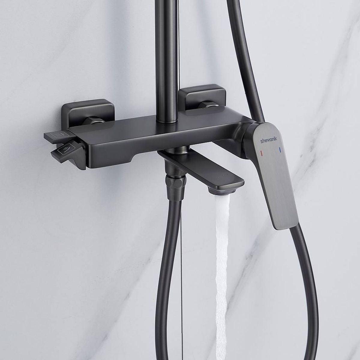 Страна бренда: Китай; Страна производства: Китай; Бренд: SHEVANIK; Бренд: SHEVANIK; Назначение: Душевые системы; Артикул: S4226T; Код: УТ000037022; Тип управления: Рычажный; Материал корпуса: Латунь; Стиль дизайна: Современный; Линии форм: Прямоугольные; Цвет покрытия: Оружейная сталь; Эффект покрытия: Матовый; Длина излива, мм: 195; Поворотный излив: Да; Тропические душевые стойки со смесителем: Да; Гарантия на товар: 5 лет; Срок поставки: 1-3 дня