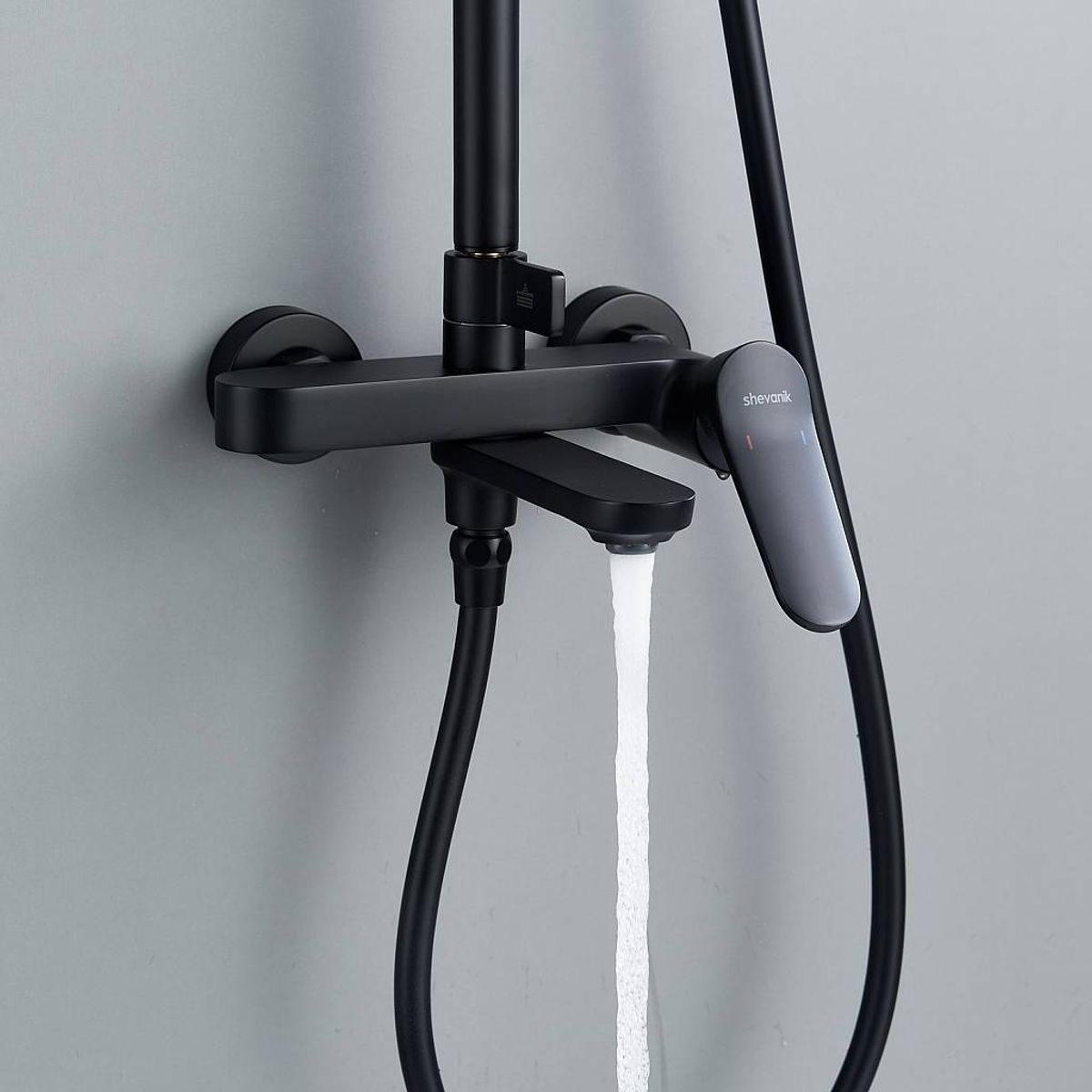Статус: Акция; Страна бренда: Китай; Страна производства: Китай; Бренд: SHEVANIK; Бренд: SHEVANIK; Назначение: Душевые системы; Артикул: S4336H; Код: УТ000037038; Тип управления: Рычажный; Материал корпуса: Латунь; Стиль дизайна: Современный; Линии форм: Прямоугольно-округлые; Цвет покрытия: Черный; Эффект покрытия: Матовый; Длина излива, мм: 200; Поворотный излив: Да; Тропические душевые стойки со смесителем: Да; Гарантия на товар: 5 лет; Срок поставки: 1-3 дня