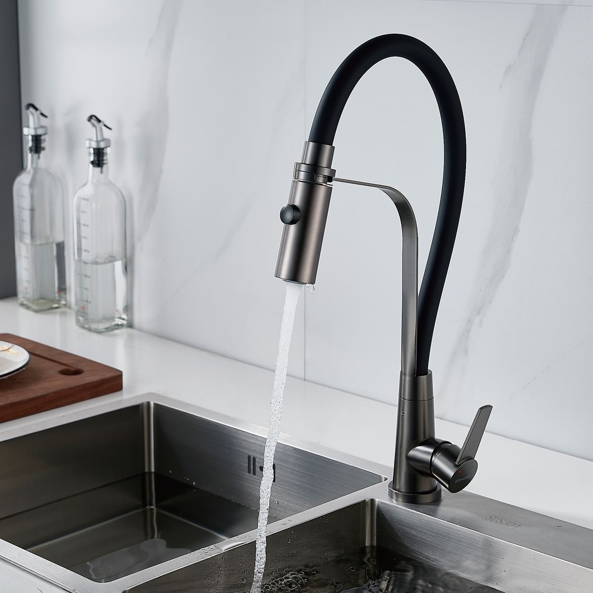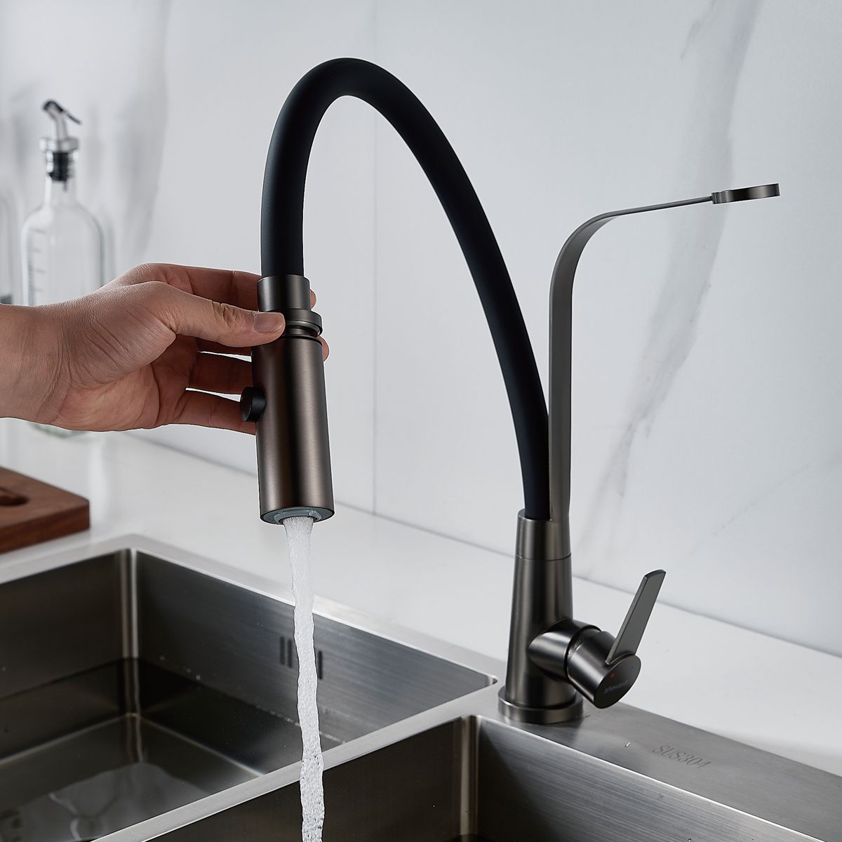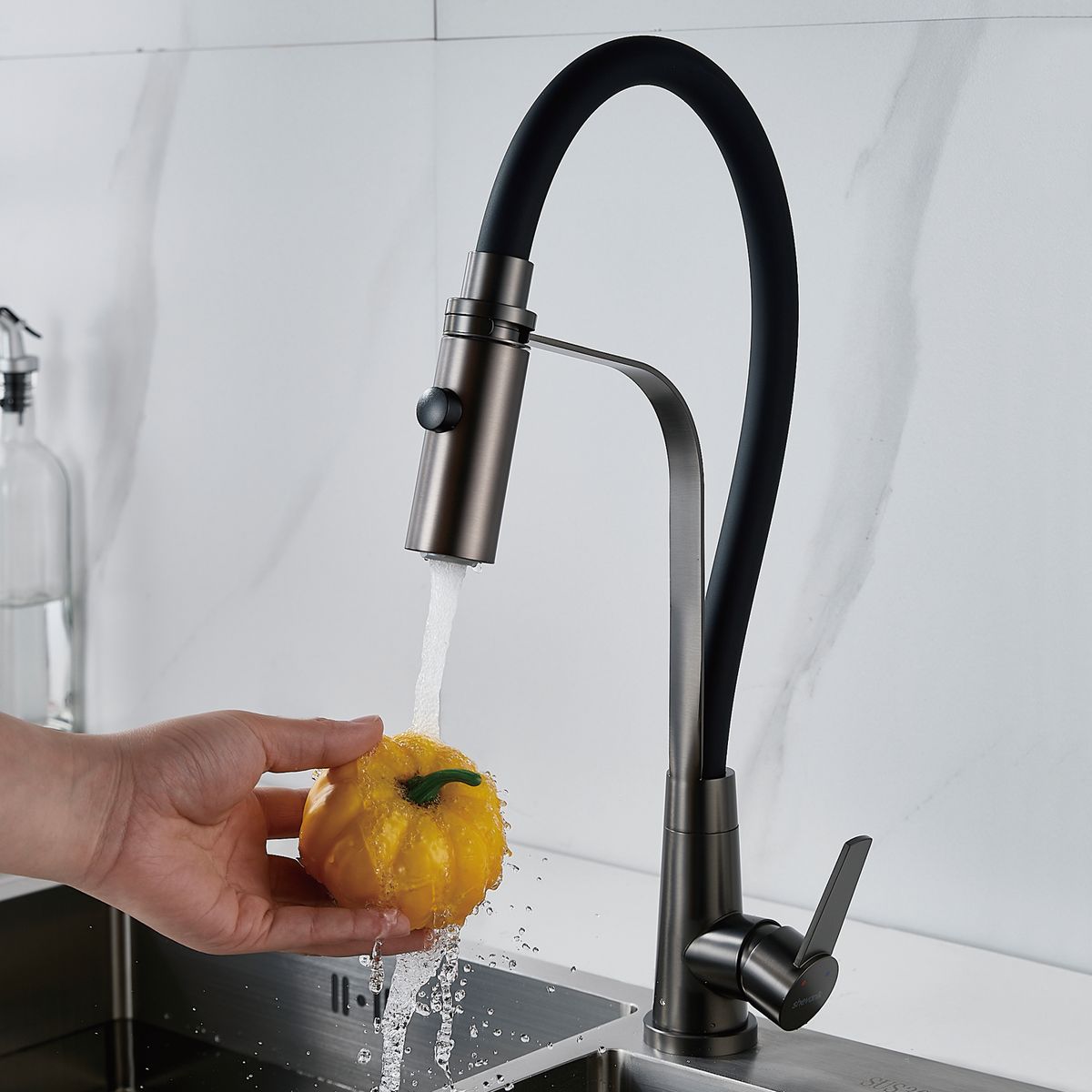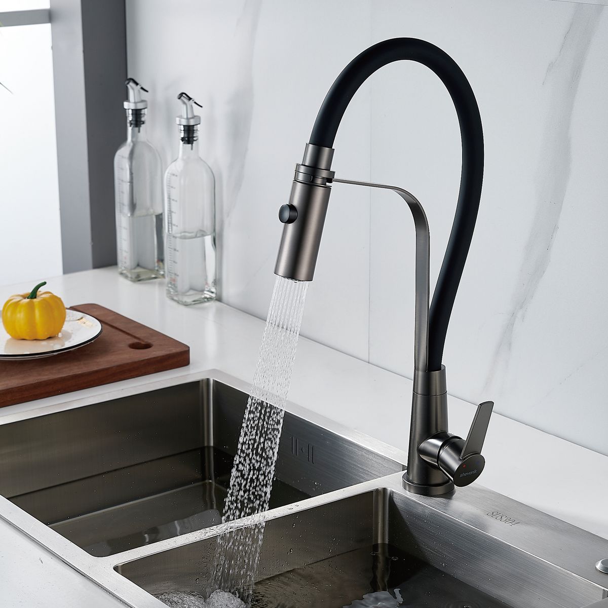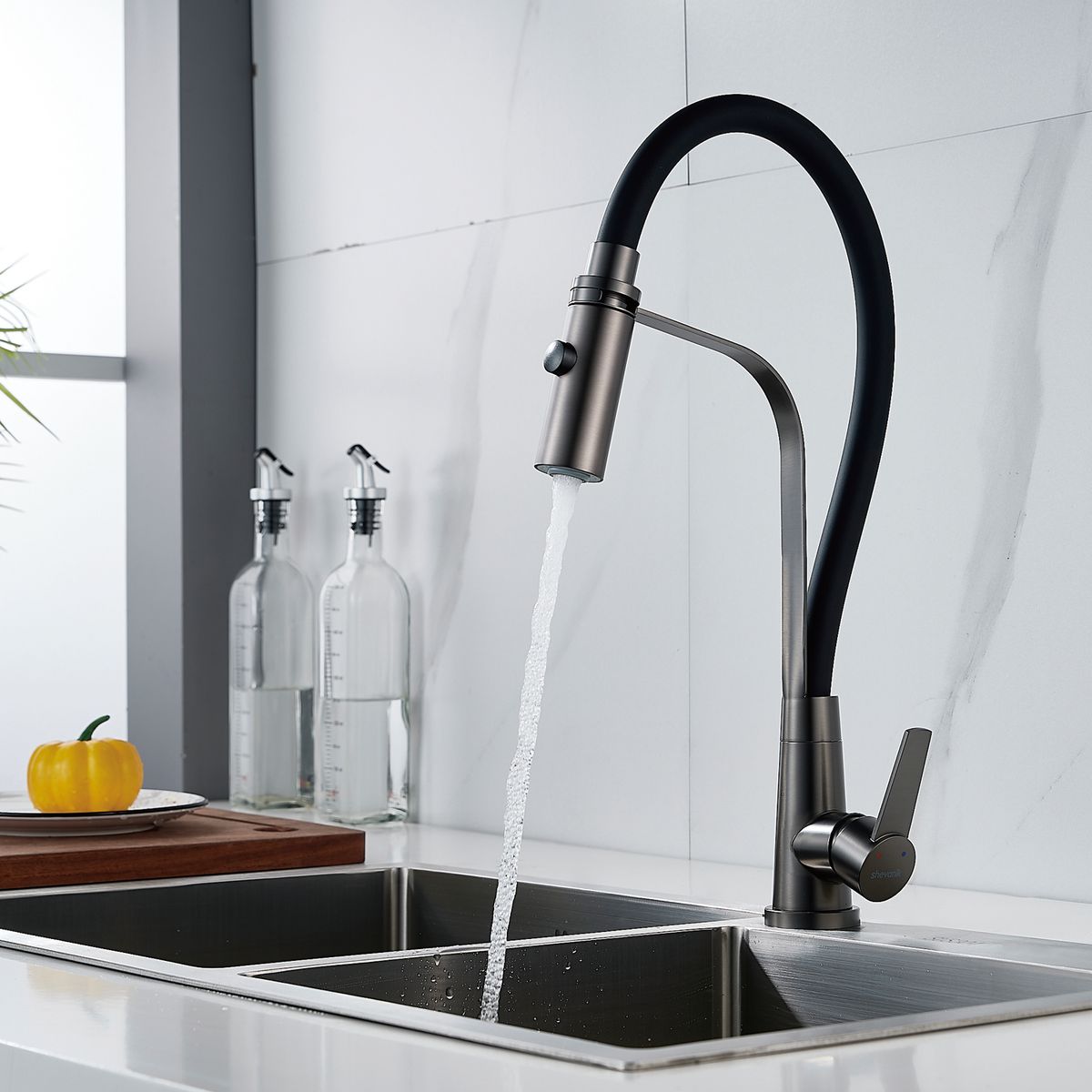 Статус: Под заказ; Страна бренда: Китай; Страна производства: Китай; Бренд: SHEVANIK; Бренд: SHEVANIK; Коллекции: S94T; Назначение: Для кухни; Артикул: S943T-3; Код: УТ000034748; Тип управления: Рычажный; Материал корпуса: Нержавеющая сталь; Стиль дизайна: Современный; Линии форм: Прямоугольно-округлые; Цвет покрытия: Оружейная сталь; Эффект покрытия: Матовый; Длина излива, мм: 165; Поворотный излив: Да; Гибкий излив: Да; Гарантия на товар: 5 лет; Срок поставки: 1-3 дня