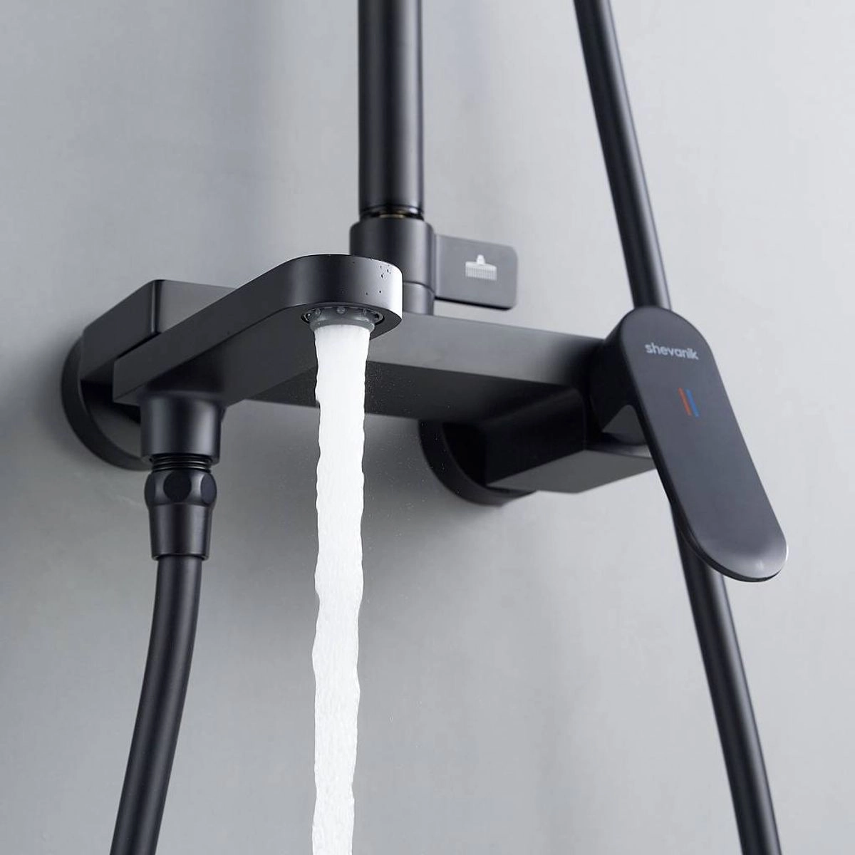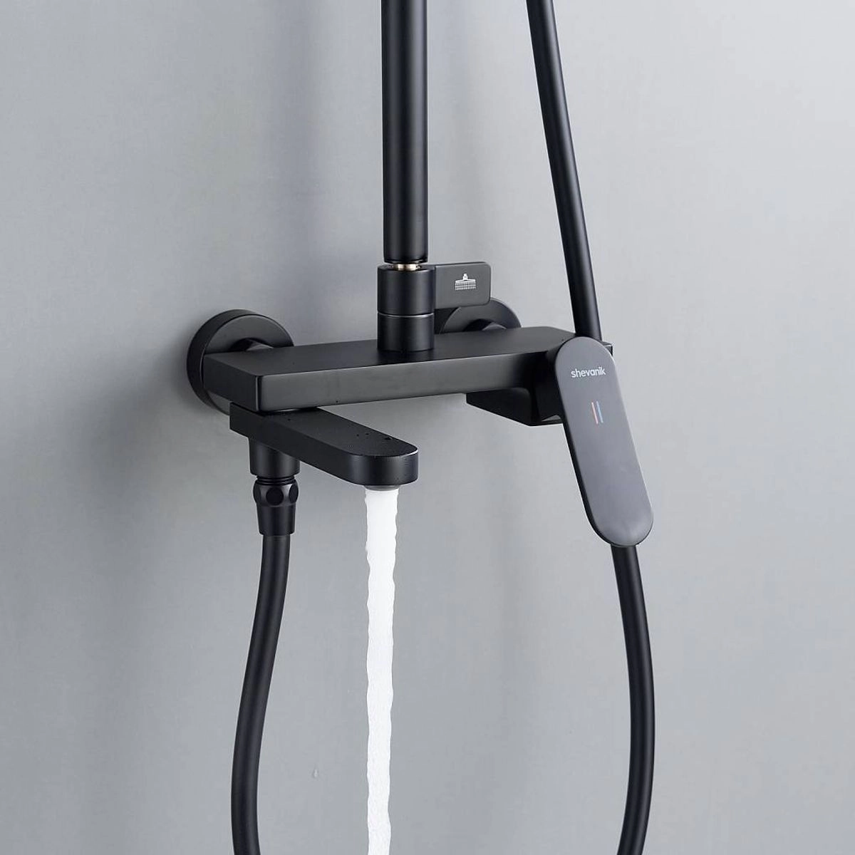 Статус: Акция; Страна бренда: Китай; Страна производства: Китай; Бренд: SHEVANIK; Бренд: SHEVANIK; Назначение: Душевые системы; Артикул: S4536H; Код: УТ000037063; Тип управления: Рычажный; Материал корпуса: Латунь; Стиль дизайна: Современный; Линии форм: Прямоугольно-округлые; Цвет покрытия: Черный; Эффект покрытия: Матовый; Длина излива, мм: 210; Поворотный излив: Да; Тропические душевые стойки со смесителем: Да; Гарантия на товар: 5 лет; Срок поставки: 1-3 дня